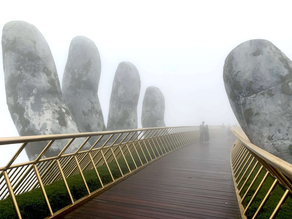 Le lendemain, nous avons visité le parc d’attractions Sun World à Ba Na Hills. Malgré le mauvais temps, nous avons apprécié les attractions intérieures et les cinémas 4D et 5D. Le pont d’or, soutenu par d’énormes mains, était impressionnant malgré le brouillard.