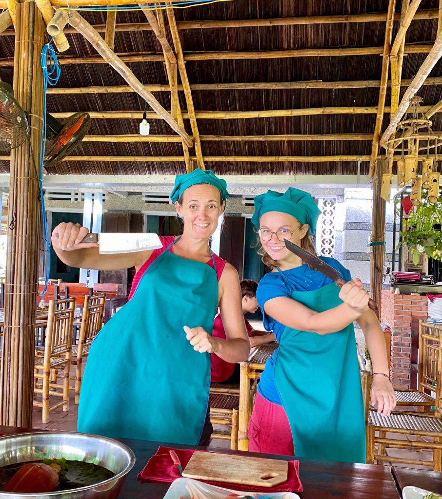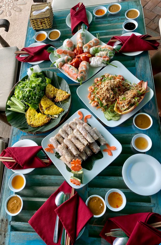 Nous avons également pris un cours de cuisine vietnamienne à Tra Que, un village réputé pour ses cultures biologiques. Après une visite des potagers, nous avons préparé et dégusté des plats typiques tels que des rouleaux de printemps et une salade de fleurs de bananier. Ce fut un moment délicieux et convivial.