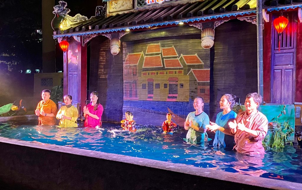 Notre visite au village de potiers de Thanh Ha fut une expérience unique. En parcourant les ruelles étroites à vélo, nous avons essayé la poterie avec un artisan local. Bien que touristique, cette activité reste amusante et éducative. Le soir, nous avons assisté à un spectacle de marionnettes sur l’eau, une tradition vietnamienne remontant au XIe siècle. Les marionnettes, sculptées dans du bois de figuier, étaient animées par des marionnettistes cachés derrière un rideau.