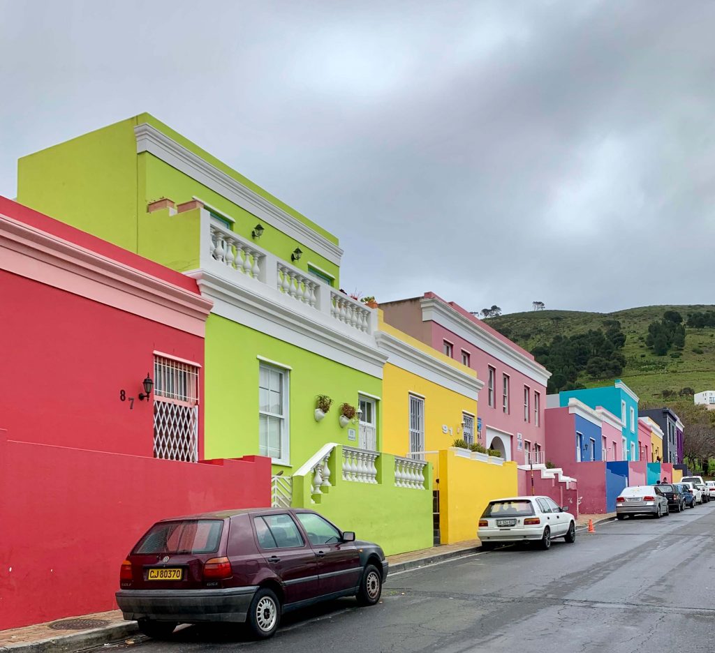 Notre premier jour à Cape Town, nous avons visité le quartier historique de Bo-Kaap. Situé sur les pentes de Signal Hill, Bo-Kaap est célèbre pour ses maisons colorées et son histoire fascinante. Anciennement appelé le quartier malais, ses habitants sont majoritairement musulmans, descendants d’esclaves amenés par les Hollandais au 16ème siècle. Chaque maison, peinte de couleurs vives, reflète la fierté de ses propriétaires, un héritage qui perdure depuis plus d’un siècle.