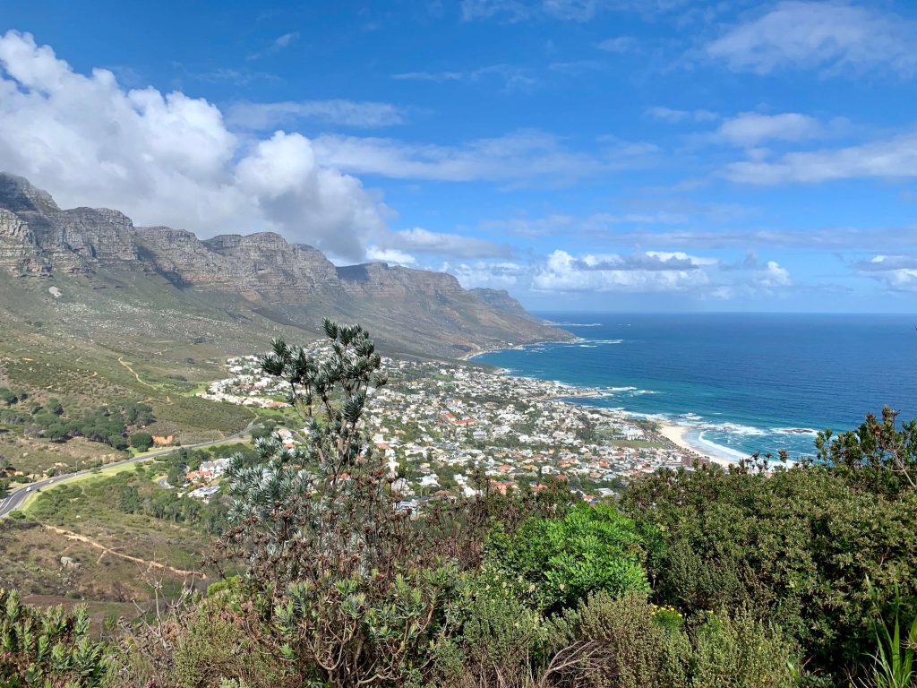 Pour le déjeuner, nous avons opté pour un restaurant à Camps Bay, une plage de sable blanc entourée de restaurants et de bars avec une vue sur la montagne Lion’s Head et les 12 Apôtres. Bien que le restaurant choisi ne soit pas typiquement local, la vue et l’ambiance compensaient largement.