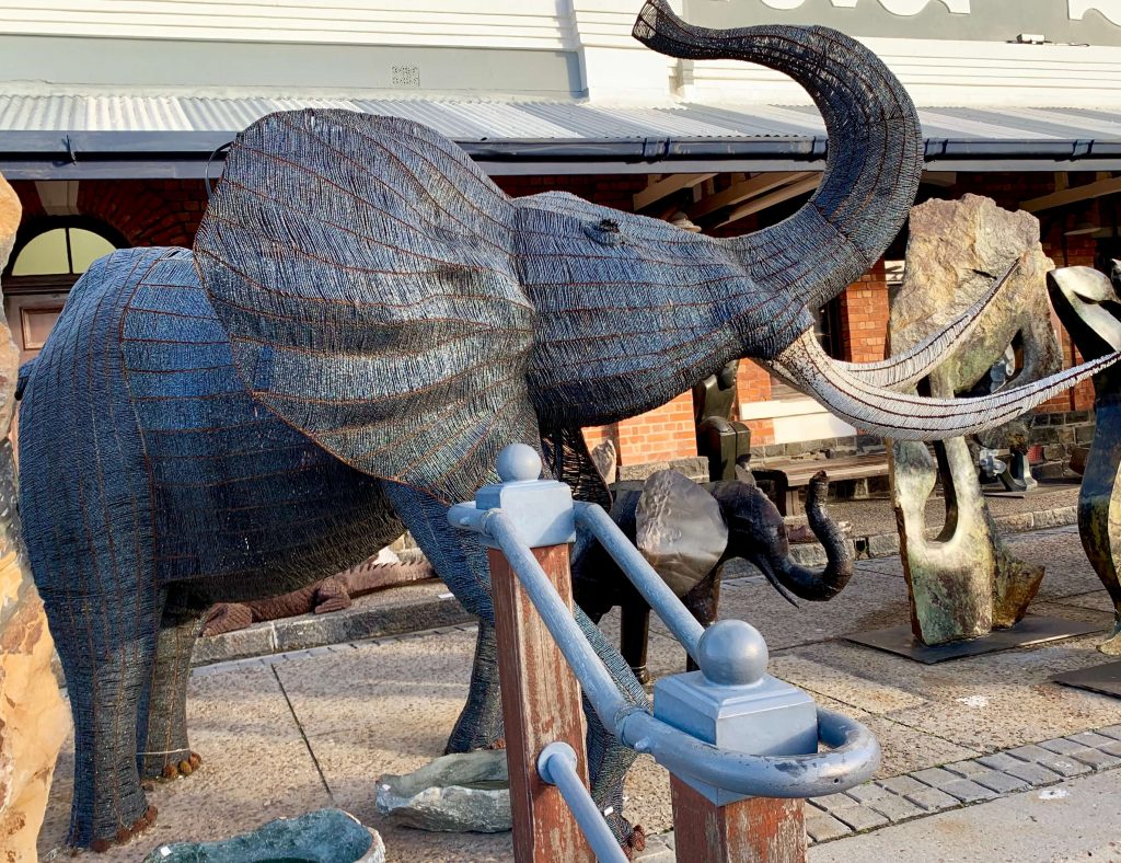 Nous avons ensuite visité le quartier du V&A Waterfront, situé au bord de l’Atlantique. Ce quartier animé combine centres commerciaux, hôtels de luxe, et attractions touristiques comme l’aquarium et un marché artisanal. Les nombreuses sculptures colorées, dont des rhinocéros en métal et un éléphant fait de perles, ajoutent une touche artistique à cette zone sécurisée.