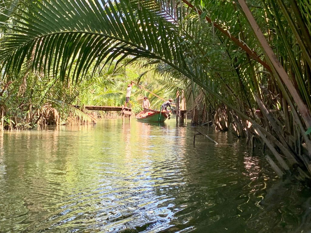Au Champa Lodge, nous avons loué des kayaks pour explorer la boucle de la Green Loop. Après quelques difficultés de navigation, nous avons trouvé la meilleure configuration pour profiter du calme et de la beauté du paysage.