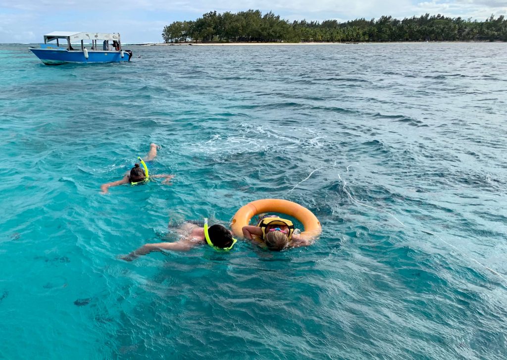 En chemin, nous avons rencontré Gilles, un expatrié français vivant à Maurice depuis 25 ans. Il nous a recommandé un hôtel abordable et nous a également conseillé une excursion en bateau à fond de verre avec Ben à Blue Bay. Cette sortie a été fantastique, avec des vues incroyables sur les coraux et de nombreuses espèces de poissons, offrant un après-midi inoubliable pour toute la famille.