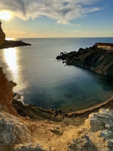 Dans l’après-midi, on se motive pour une petite escapade nature. Direction Gnejna Bay, une plage pittoresque située sur la côte ouest de Malte, connue pour son cadre préservé et ses eaux cristallines. L’idée était simple : se balader et rejoindre la célèbre baie voisine, Ghajn Tuffieha, en suivant un chemin déniché sur Google.