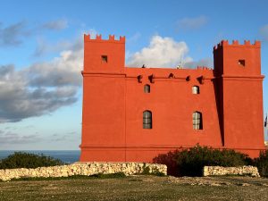 Pour conclure cette journée, nous avons pris le temps de découvrir Ramla Bay, célèbre pour son sable d’un orange profond, unique à Malte. Cette plage, entourée de collines verdoyantes, offre un paysage contrasté et apaisant. Avant cela, nous avons fait une halte rapide aux salines de Marsalforn. Sous une lumière dorée, le ciel semblait encore une fois conspirer pour magnifier les lieux.